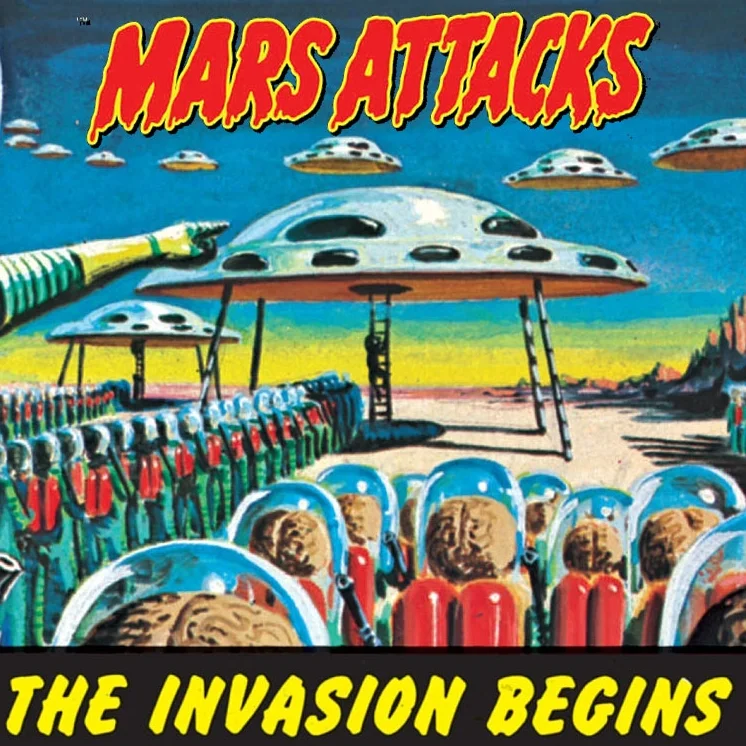 From the 1962 original Topps trading card set: MARS ATTACKS! Included are the fronts and backs of the 55-card set as well as several images of the box and pack design.